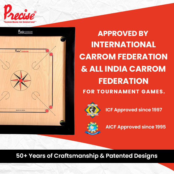 - Precise Ekkon Series are our budget range of Elegant carrom boars with all features of Elegant carrom boards.