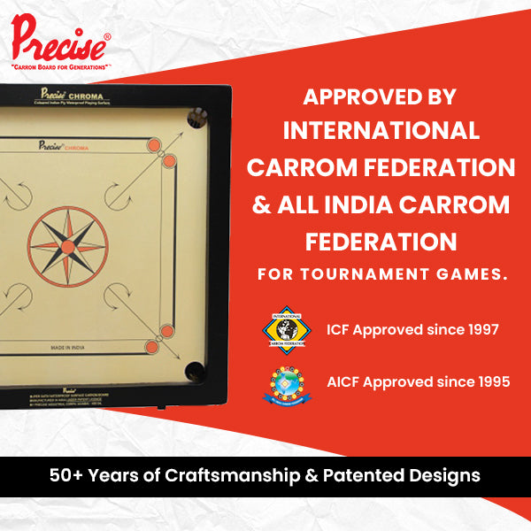 - In Chroma model of carrom boards each and every carrom board playing surface is identical and is of uniform Ivory colour